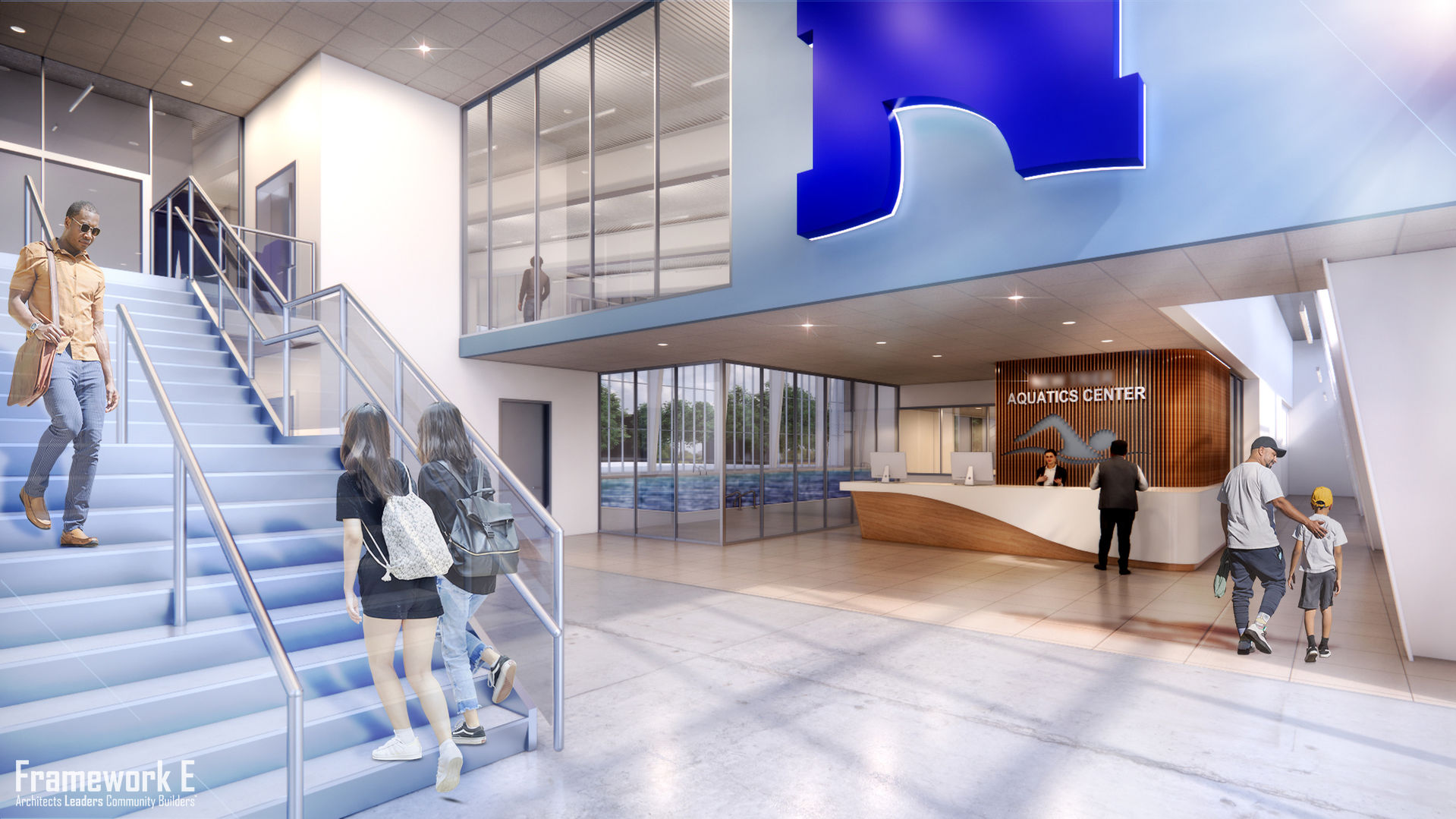 Framework E is leading the architectural and engineering work for a new natatorium in the North Chicago suburbs. The facility will serve the local community and train Olympic-level competitors. The competition pool will feature seating for 6,000 spectators, making it a premier venue for major events. A separate half-size training pool can be used for teaching bourgeoning younger athletes the fundamentals and provide physical therapy for the elderly and disabled. It’s a hub for both recreation and elite athletes.